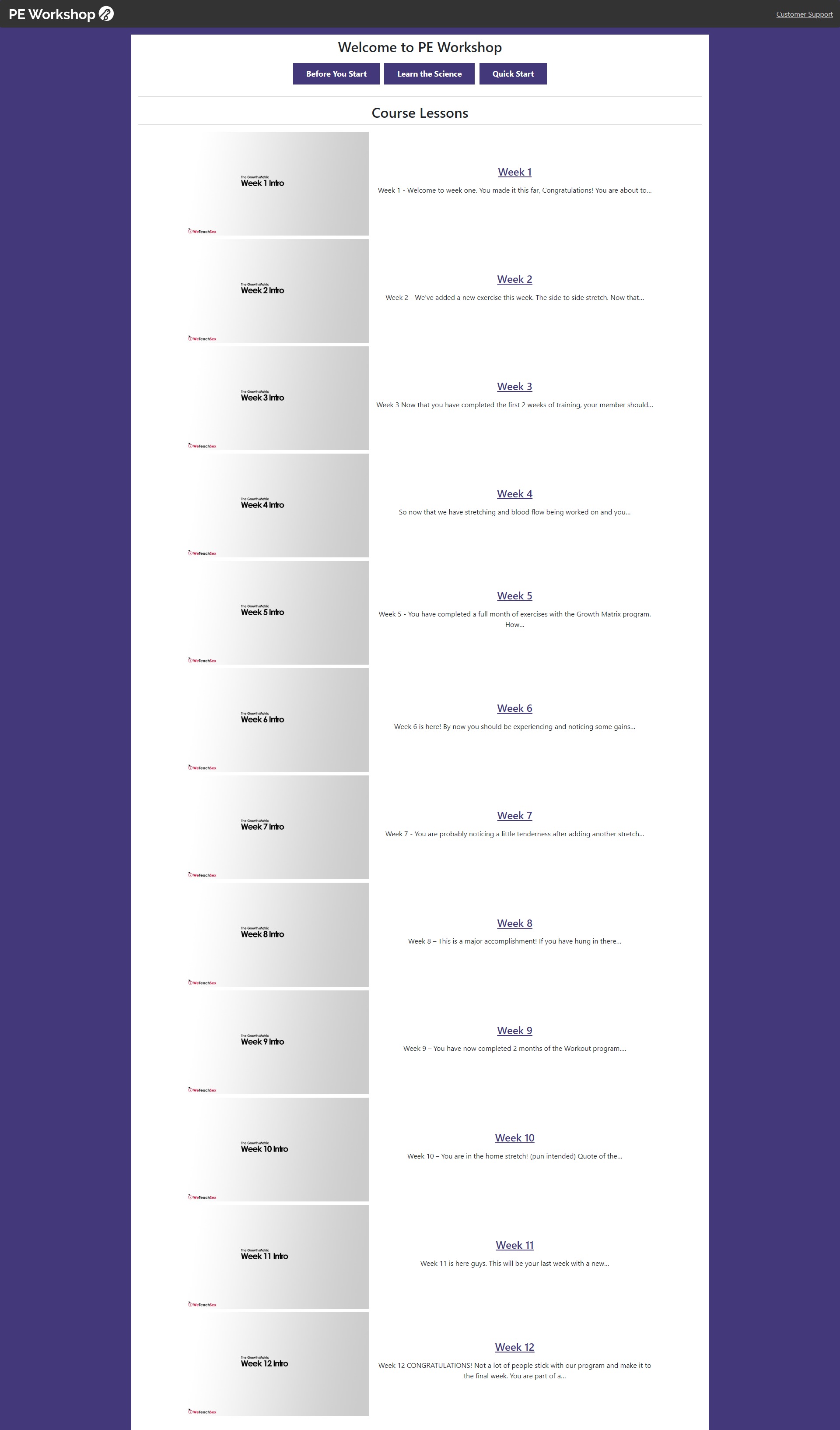 The PE Workshop program is only available for those 18 years of age and older.